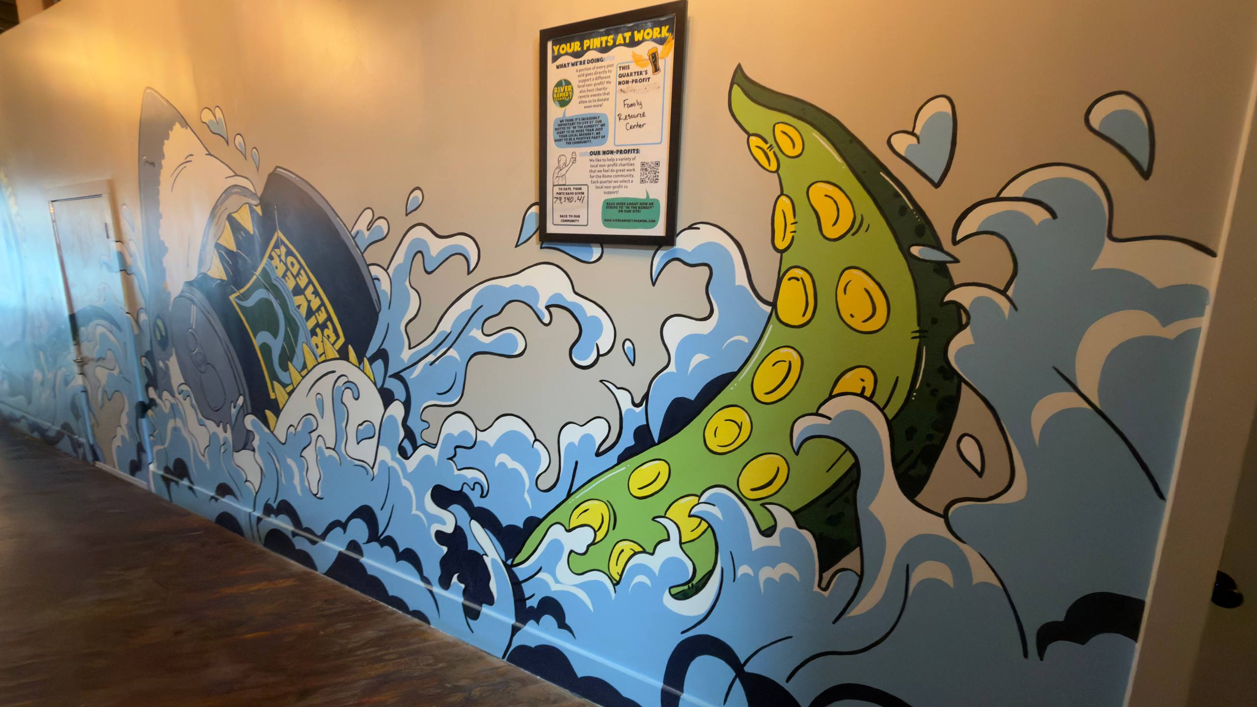 My mural work is designed to pull people in, literally. I create pieces that customers can interact with, pose in front of, become part of, or discover hidden details within. These murals turn boring taproom walls into viral branding opportunities that give people something to photograph, share, and remember well after the buzz has worn off.